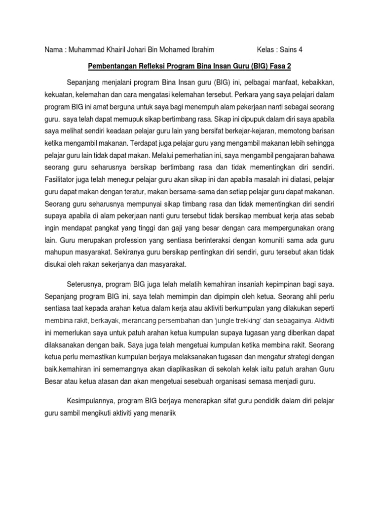 Pembentangan Refleksi Program Bina Insan Guru Pdf